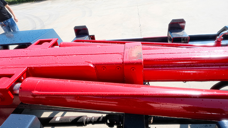 油缸采用国内知名平牌,双液压缸伸缩举伸自卸更稳定,有力且更安全,工作更有保障.